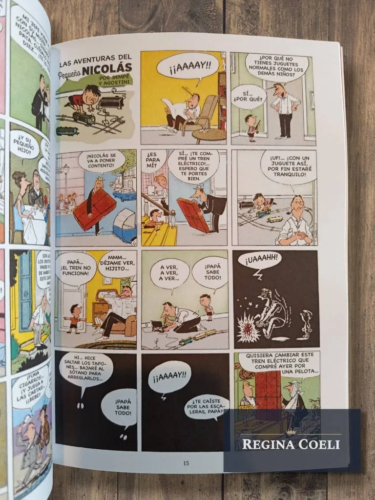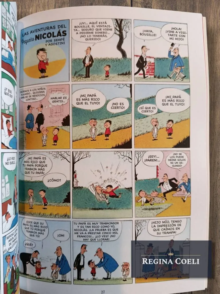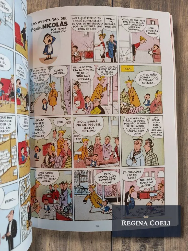Aquí las publicamos en el orden de aparición. La primera página data del 25 de septiembre de 1955, y la última apareció el 20 de mayo de 1956. Esta historieta derivó en los famosos cuentos ilustrados,  que resultaron un éxito y en 1960 se publicaron los libros que recopilan las travesuras del Pequeño Nicolás para el deleite de los niños y de sus padres.